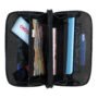 - Incluye doble cierre con compartimento para billetes y credenciales y cierre interno para monedas en la parte frontal.